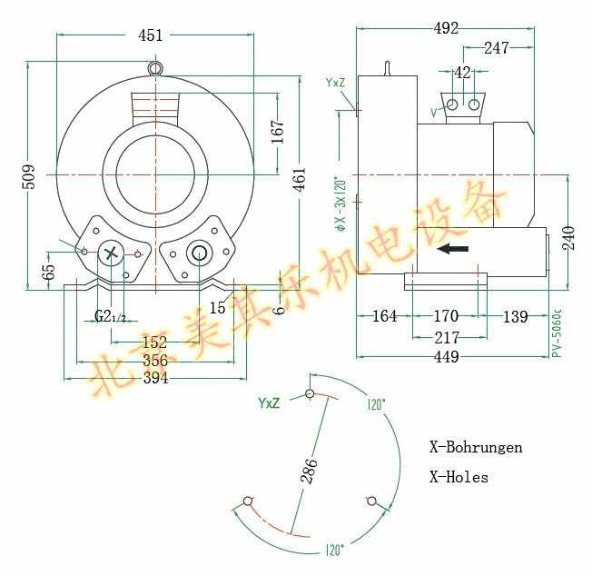 單葉輪5.5kw漩渦氣泵尺寸圖: